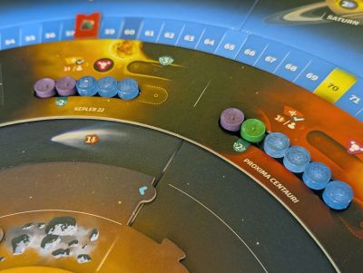 - Scanner un secteur : Scanner le secteur depuis la Terre (sachant que le plateau va tourner au fil de la partie) afin de gagner des données pour alimenter votre supercomputer.