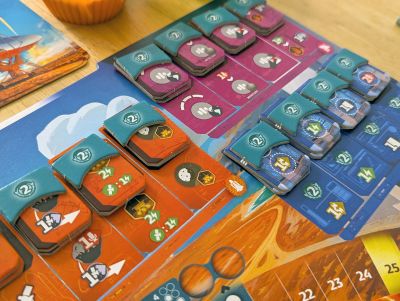 Malgré tout, le jeu reste très plaisant à jouer de par son thème plutôt bien respecté (c’est très subjectif, mais perso ça me parle), et la diversité de ses mécaniques. J’aime aussi beaucoup cette idée de faire quasiment ce qu’on veut avec ses actions gratuites (qui ne sont pas vraiment gratuites d’ailleurs) et permet de ne pas trop se poser de questions de points de règles, et a contrario de pas mal se creuser la tête pour réaliser des combos d’actions complexes. Ça permet d’ailleurs parfois de pouvoir continuer à jouer une manche là où on aurait logiquement dû s’arrêter, faute de ressources. Par contre, on ne sent pas vraiment de montée en puissance des combinaisons, comme c’est généralement le cas dans ce type de jeux. Bien sûr, la multiplication des technologies et des cartes va nous assurer de quoi faciliter ses actions, jouer plus et plus longtemps, mais je n’ai pas ressenti ce sentiment grisant, quand tout s’imbrique au fur et à mesure que la partie avance.