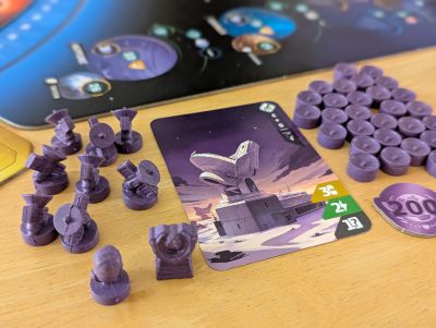 Comme vous l’aurez compris à la lecture de ces règles, il s’agit ici d’un jeu Expert destiné avant tout aux joueurs et joueuses chevronné(e)s. En soi, le déroulement d’une partie n’est pas bien compliqué, mais les très nombreuses informations à digérer et à exploiter, font qu’il est difficilement compréhensible pour des personnes peu habituées aux gros jeux. De plus, il est plutôt long, avec des débuts poussifs, notamment le temps d’appréhender les nombreux picto présents sur les cartes et les technologies qui nous ramènent toutes les 30 secondes à l’aide de jeu. Et comme si ça ne suffisait pas, la découverte des deux races extra-terrestres met le jeu en pause en plein milieu de la partie, le temps de les dévoiler et d’en lire les règles qui leur sont spécifiques. Alors rassurez-vous, après quelques parties tout devient plus fluide et rapide, mais ça reste très relatif (comptez environ 1h par personne).