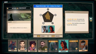 Toutes et tous ont leur propres particularités, à commencer par un score dans les 5 compétences de bases que sont le combat, la vigueur, la mobilité, le charisme et l’intelligence. Mais ils possèdent également trois pouvoirs, qu’il sera nécessaire de débloquer au fur et à mesure de leur progression (le 1er s’acquiert très rapidement, les deux autres beaucoup moins) ainsi qu’une personnalité et un passé qu’il ne faudra pas négliger, tant ces infos s’avèrent être une vraie mine d’or par moment (envoyer un ancien cocaïnomane sur un traffic de drogue peut aider, par exemple). Chaque mission réussie va leur faire gagner des points d’XP, qui se transformeront ensuite en points de compétences afin d’améliorer son héros dans la direction qu’on souhaite qu’il prenne : spécialisation, uniformisation, complémentarité… à vous de décider (et d’assumer).