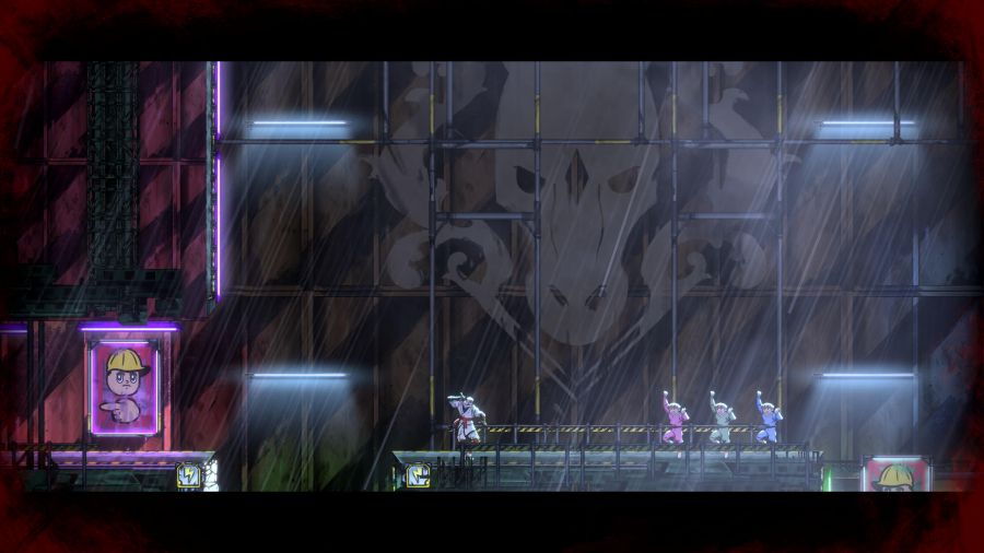 Dans sa construction, le jeu est à peu près aussi original que dans son pitch. Entre l’action platerformer classique, fidèle aux bornes d’arcades, tout en lorgnant sur le metroidvania, Shinobi jongle avec réussite entre les genres. Le jeu est découpé en niveaux, que l’on peut revisiter à notre guise pour compléter toutes les zones d’abord inaccessibles à cause des capacités qu’il faudra débloquer au fur et à mesure de l’aventure. Une fois fini, un pourcentage vous indiquera votre progression en indiquant ce que vous avez manqué parmi les différents secrets/trésors à découvrir.