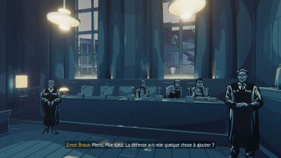 On incarne donc Esther Katz, une jeune procureure fraîchement sortie des bancs de l’école, rejoignant la tant décriée équipe de Fritz BAUER pour chasser les nazis et les condamner pour leurs crimes. Alors dit comme ça on s’attend à confronter Goebbels à la barre, mais en vrai il s’agira plutôt de « petites » affaires de crimes communs perpétués sous le regime nazi; tirées d’ailleurs de véritables enquêtes historique. Et si la première concerne directement des soldats nazis, la deuxième met en accusation des policiers allemands et des civils. On est donc loin d’Auschwitz… Et oui, vous avez bien lu : Il n’y a que deux affaires à traiter dans ce jeu, pour grosso modo 10h de jeu. En soi, 10h pour 15€ c’est plutôt acceptable, mais on ne peut s’empêcher d’être frustré quand le générique de fin tombe, tant on aurait aimé continuer. Et c’est d’autant plus vrai que le dénouement est un peu trop abrupt et nous laisse clairement sur notre faim. Mais bref, revenons au début…